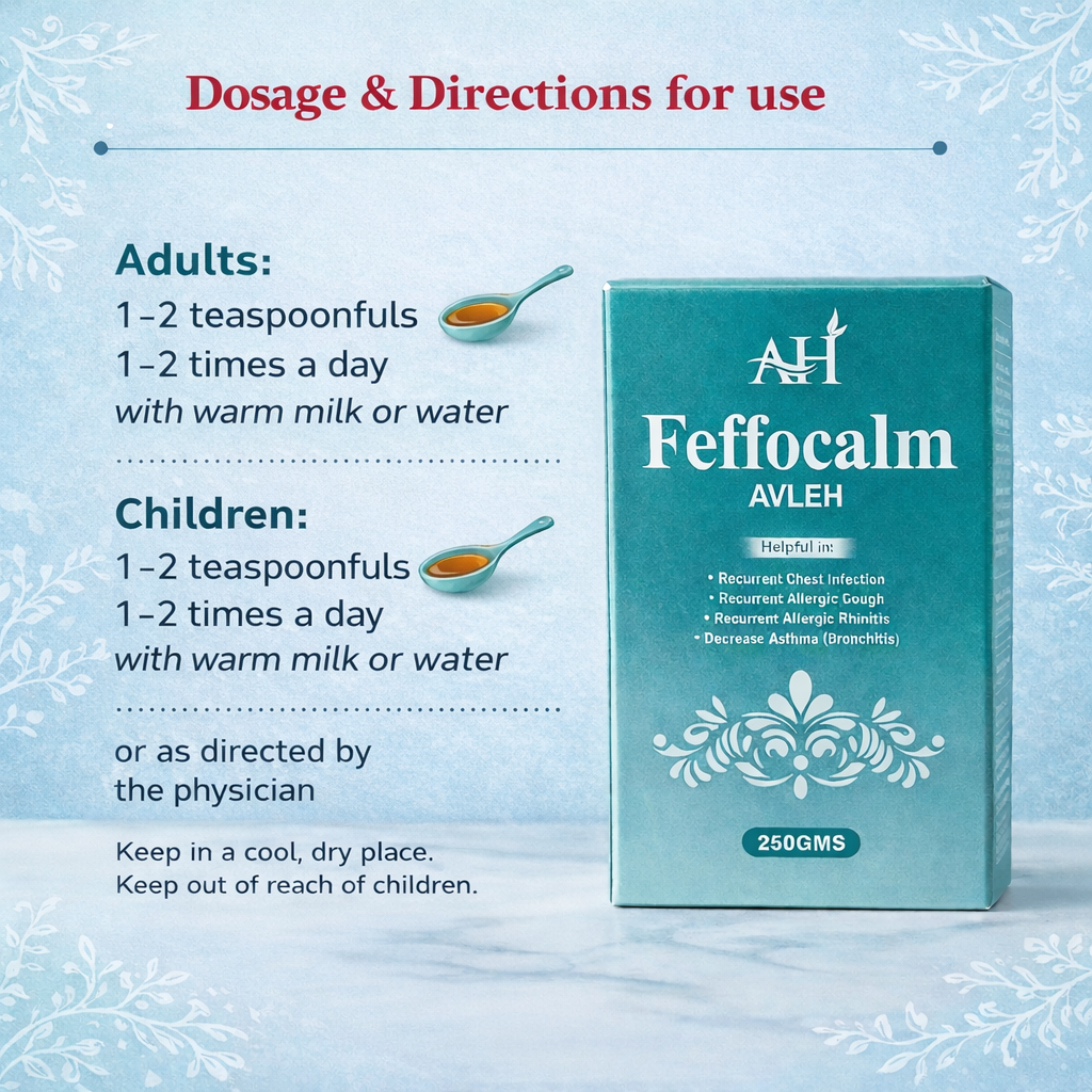 Its herbal blend works gently to maintain respiratory balance, making it suitable for regular wellness routines. With a pleasant taste and a honey-based formulation, Feffocalm Avleh is easy to consume and ideal for those seeking natural Ayurvedic support for everyday respiratory comfort.