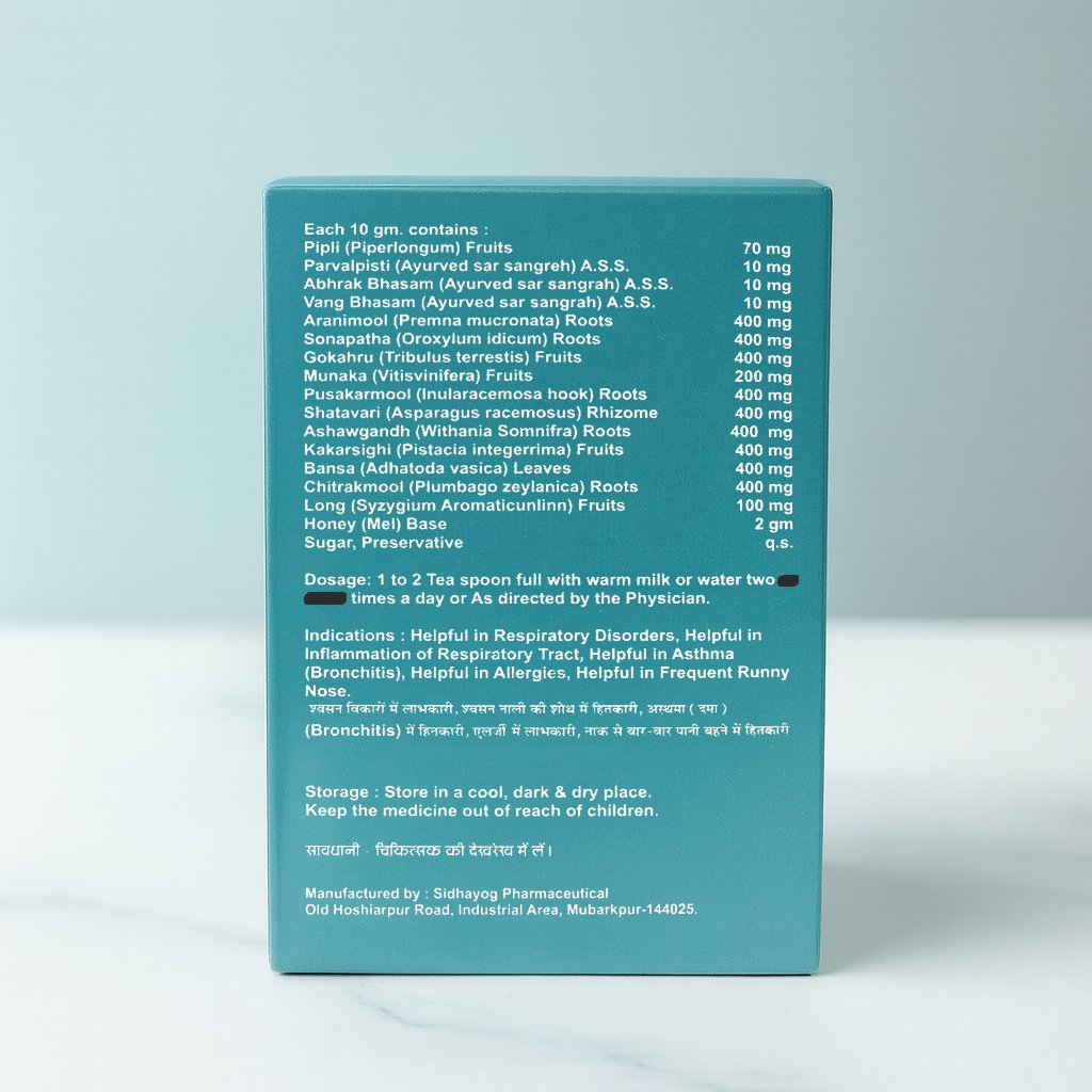 Feffocalm Avleh by Aggerson Herbs is a traditional Ayurvedic proprietary formulation designed to support respiratory health and overall breathing comfort. Crafted with time-tested herbs like Pippli, Ashwagandha, Shatavari, Bansa, and Kakarshingi, this Avleh helps soothe throat irritation and supports lung function—especially during seasonal changes and exposure to pollution.