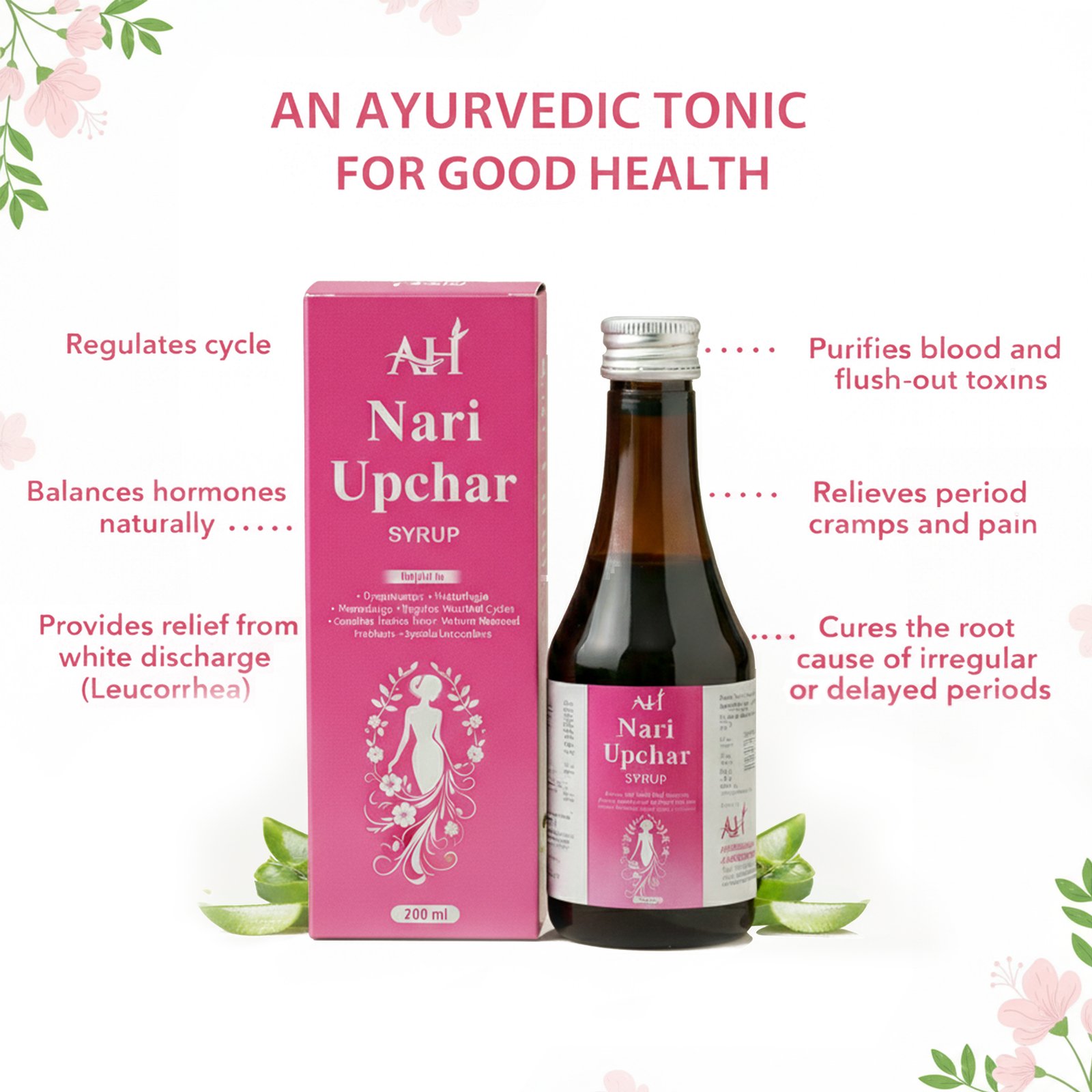 Aggerson Herbs Nari Upchar Ayurvedic Syrup is a comprehensive women’s wellness solution formulated with traditional Ayurvedic herbs to support menstrual health and hormonal balance. This 200 ml uterine tonic is specially designed to address common feminine health concerns, including dysmenorrhoea, metrorrhagia, and menorrhagia. The syrup helps regulate menstrual cycles and provides relief from menstrual discomfort whilst supporting overall reproductive wellness. Crafted with a blend of time-tested Ayurvedic ingredients, this proprietary medicine works as a complete uterine tonic to help relieve menstrual problems and address specific leucorrhoea concerns. The formulation aims to restore hormonal balance naturally, making it beneficial for women experiencing irregular periods or menstrual irregularities. Each bottle contains carefully selected herbal extracts that work synergistically to promote feminine health and wellbeing. This Ayurvedic syrup offers a natural approach to managing menstrual wellness, helping women maintain their daily routine with greater comfort and confidence throughout their monthly cycle. Note: This product is not suitable for PCOS and PCOD conditions. Women diagnosed with PCOS/PCOD are advised to consult a healthcare professional for appropriate treatment.